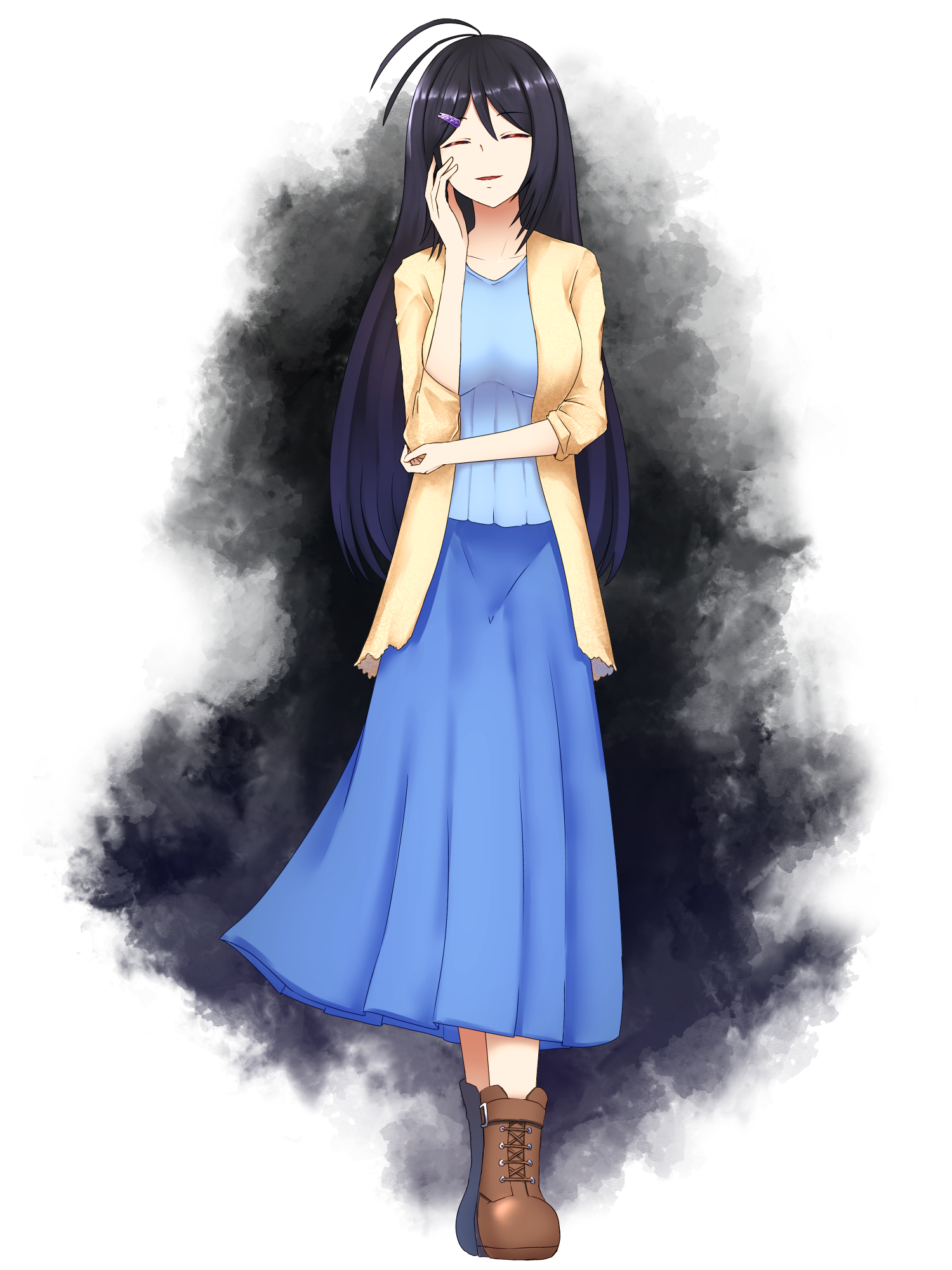 162.7cm 赤い瞳 漆黒の髪 普通の肌