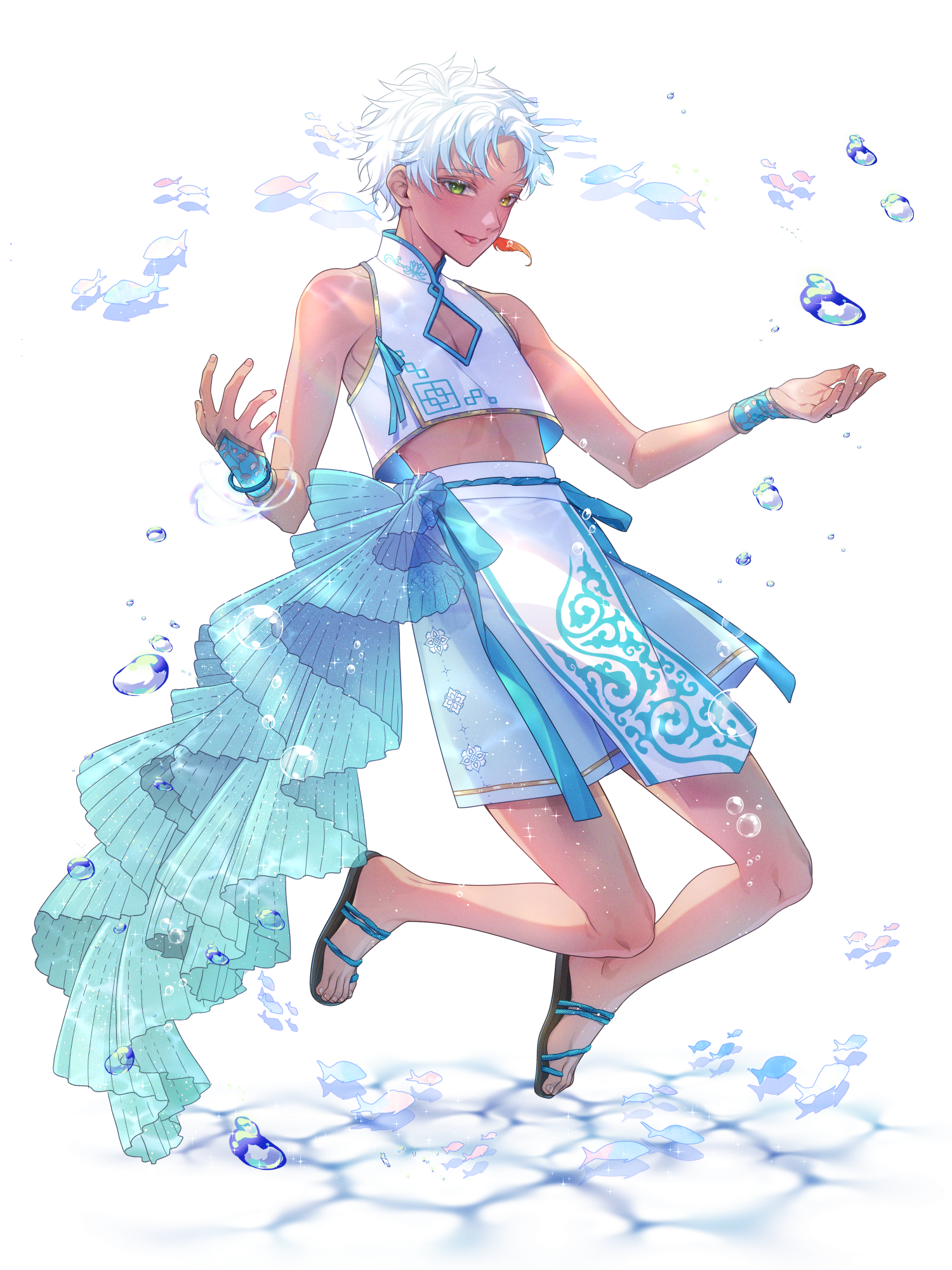 …とと、感想。チュウカ風の水着でしょうか~?白と水の色の組み合わせがステキです!水の中のような~夏のさわやかな空のような~。