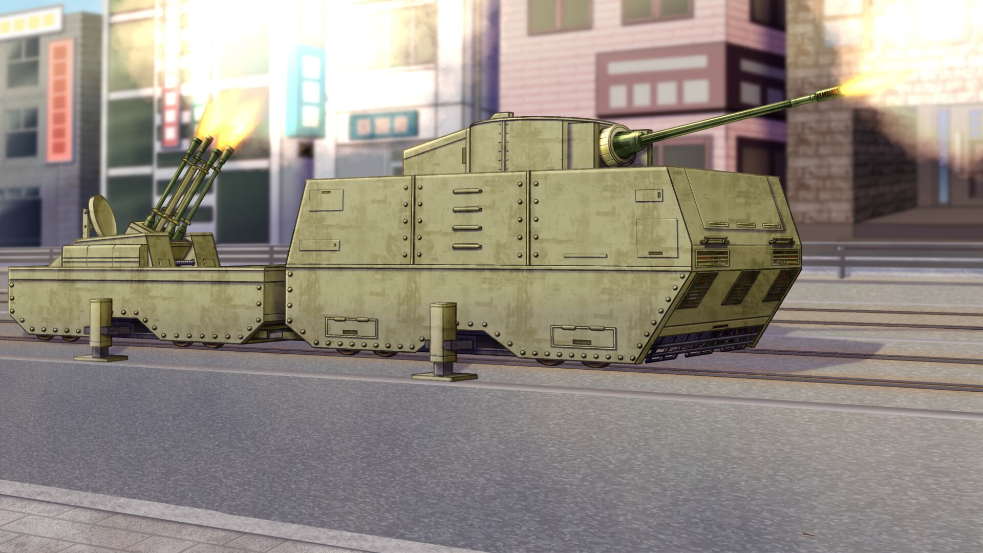 内容:ケルベロスディバイド・装甲路面列車部隊のいる風景