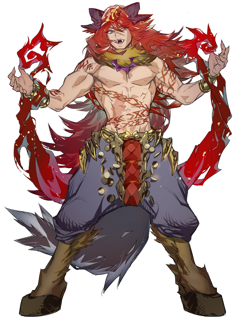 【自身の体を切り裂き噴出する「紅蓮の炎」】が命中した対象を燃やす。放たれた【獰猛な獣の如く敵を貪り燃やす紅蓮の】炎は、延焼分も含め自身が任意に消去可能。