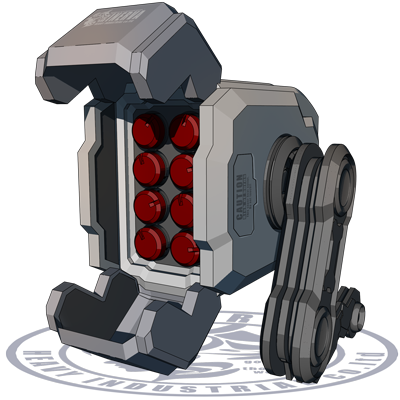 電磁徹甲弾を連射する、キャバリア用の肩部装着型ガトリング砲です。