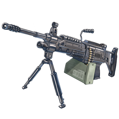 5.56mm弾を使用する分隊支援火器で、謎の力で弾切れを起こす事はありません。