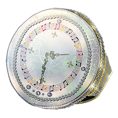 文字盤が楽譜デザインのウォッチリング。内側に小粒のダイヤで作られた音符が躍る。