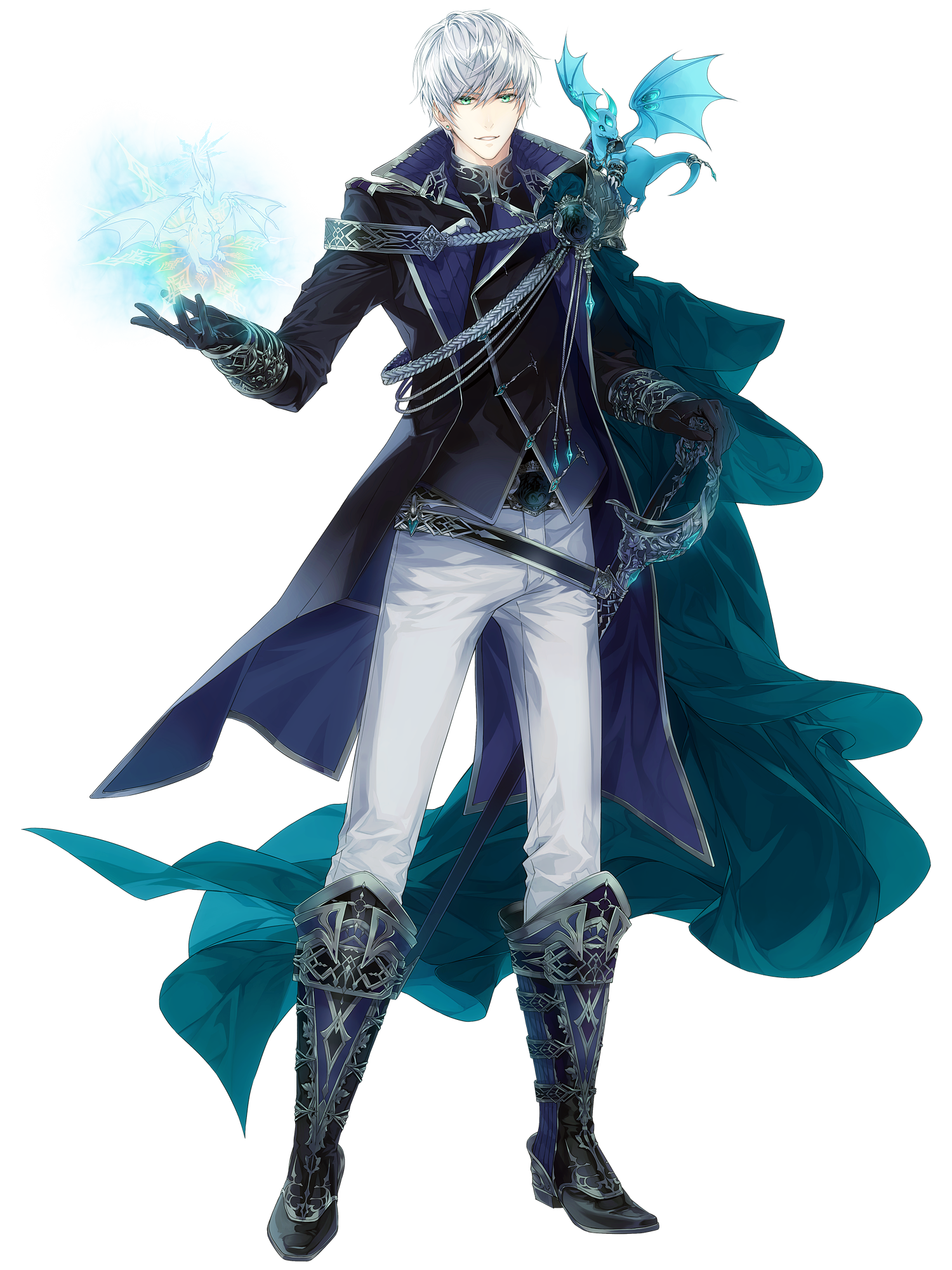 二尺五寸、直刃の太刀は柄に白銀を纏い、藍漆に銀鱗散る拵の中。軽く鋭く斬り裂く牙。