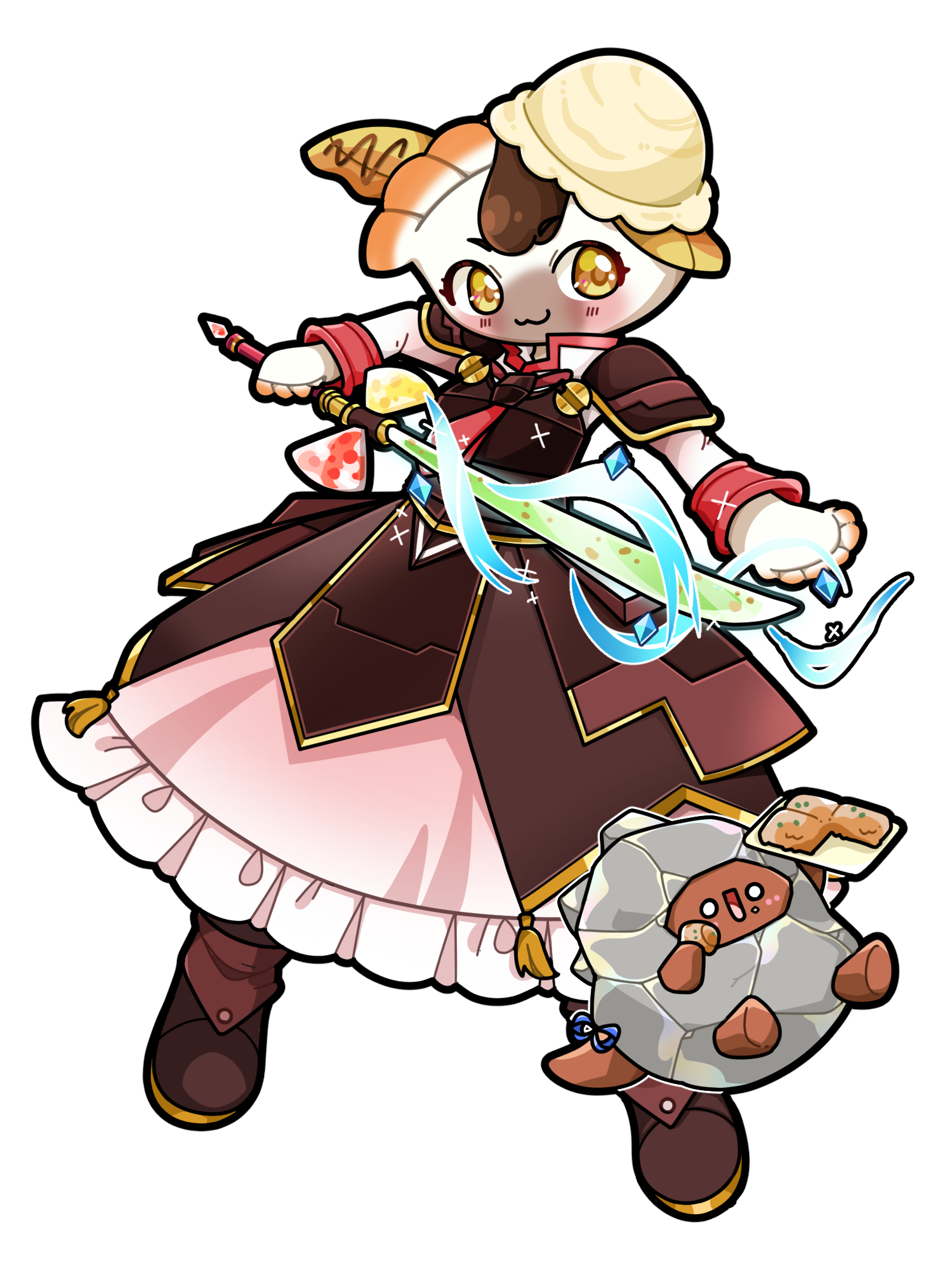 チョコ餃子に付き物のバニラアイスやチョコソースのご当地パワーを含んだバトルオーラ