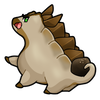 チョコ餃子型の雌のステギョザウルス、温厚でチョコ好き、器用でチョコつぶて投げ得意