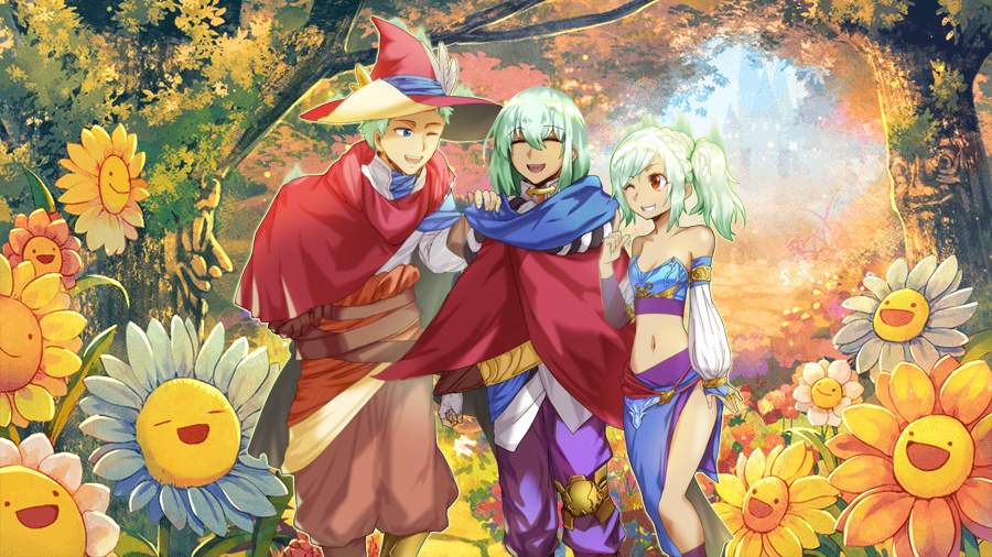 メイプルの森に高く低く、不気味な声が響く。声を聴いた兵隊たちは弾かれるように二人に接近を始め、アトシュの愛銃が兵隊たちに向く。だが、兵たちの刃がアトシュに届くことはなかった。兵隊たちの横腹を食い破るように別の青年が武器を手に躍り出たのだ。
