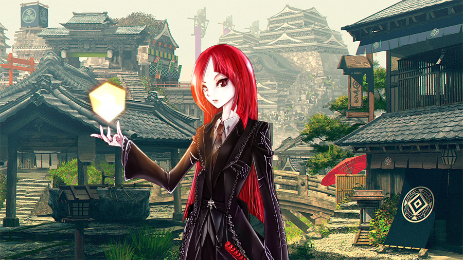 歩哨を務める女剣士が誰何の声を上げる。こつこつと靴音を立てて階段を上ってきたのは、豊かな金髪を揺らす眼帯の女。サムライエンパイアの者ではないと、一目で分かる出で立ちだ。女は歩哨の制止を無視して、無言で近づいてくる。口元に静かな笑みを湛えて。