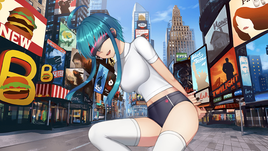 交差点の人々はその少女がモニターに映った瞬間、わっと歓声を上げた。