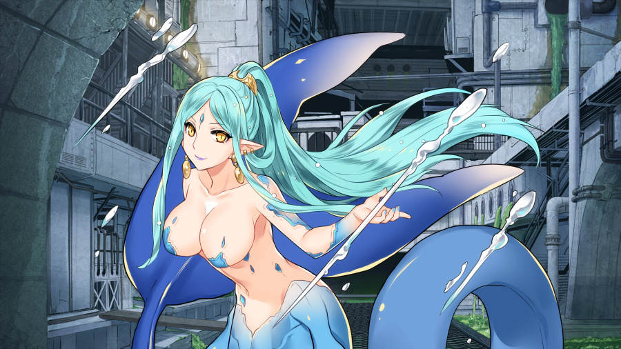 彼女の体、下半身を構成する『鞭』のようなそれが配管を薙ぎ払い、轟音が響き渡ると同時にパイプから汚染水が溢れだす。