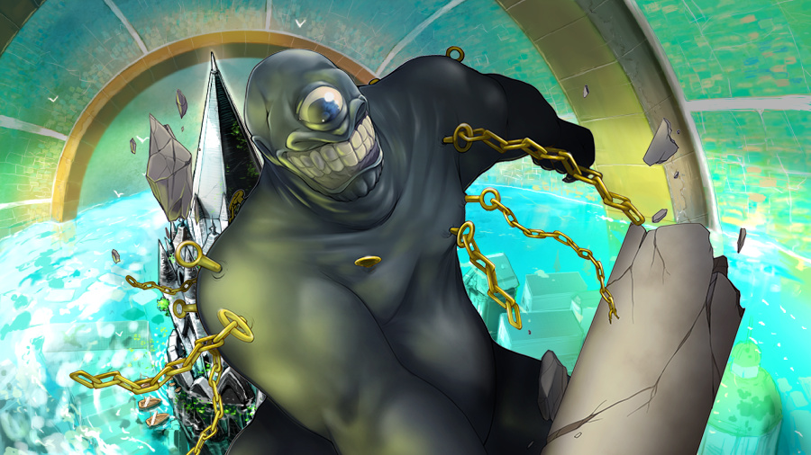 見上げると、サイクロプスの巨大な眼が、真っ直ぐに此方を見下ろしていた。