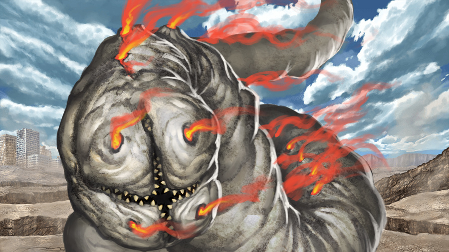 正確なその一投が、その巨体の文節脳を一直線に刺し貫き、地底湖に落下する寸前のその巨体を止めた。