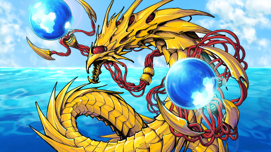 悠然と瀑布の上に佇む、陽光を弾く巨大な黄金飛翔竜。長さ10kmの金属にて構築されたオブリビオン。未来と生命を忌む帝竜『女禍』。