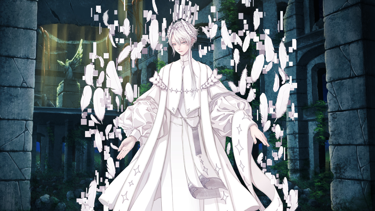 白聖者は、ノイズまみれの身体で、白い羽根を散らしながらも立ち上がる。