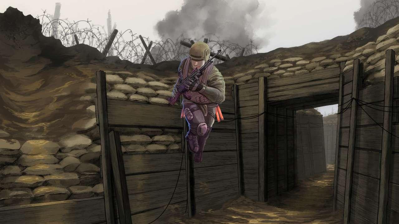 視界は悪く、耳を澄ませば遠くから少しずつ近づく足音や、小銃の金属音が微かに響いてくる。