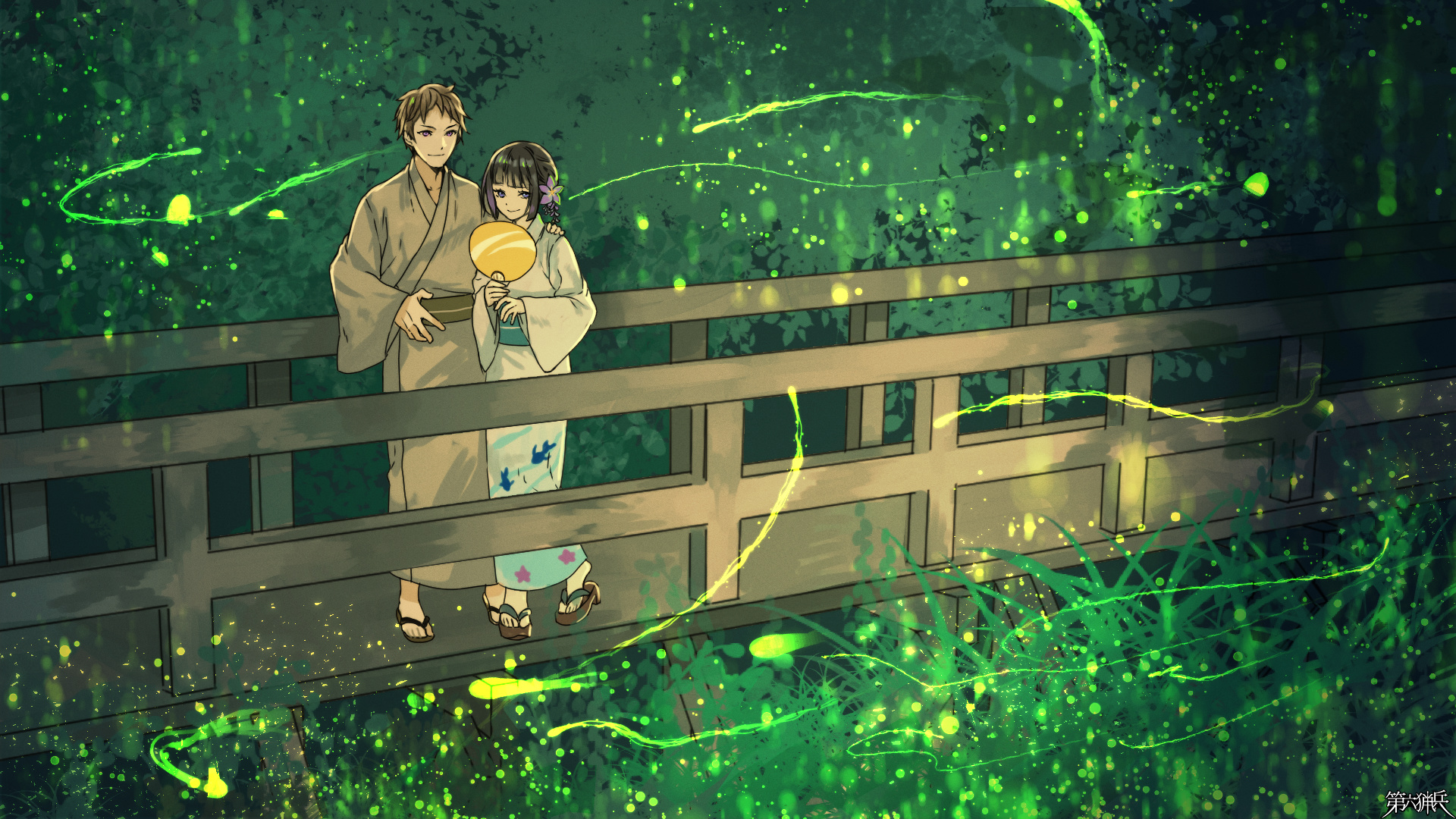橋に近寄ったり、遠巻きに眺めるように飛んでみたりと蛍も蛍で忙しい。その奔放さは、ふたりに一層の幻想的な時間を齎した。