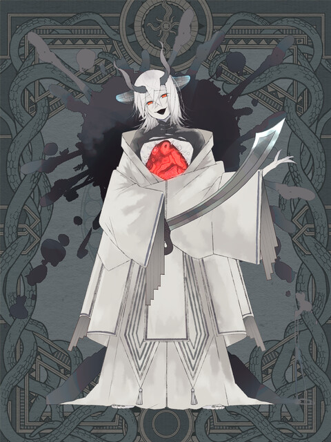 縞瑪瑙姫はぼんやりとしていた。まるで、死期を悟ったかのように、怪物どもを視ていた。信者への言の葉も、神への祈りもなく、只、新たな世界の幻想を観察していたのだろうか。オリジナルは多少利口であってくれよ? ああ、それだけだ。するりと、刃を抜いたのだから、首が刎ねるのは必然であった。