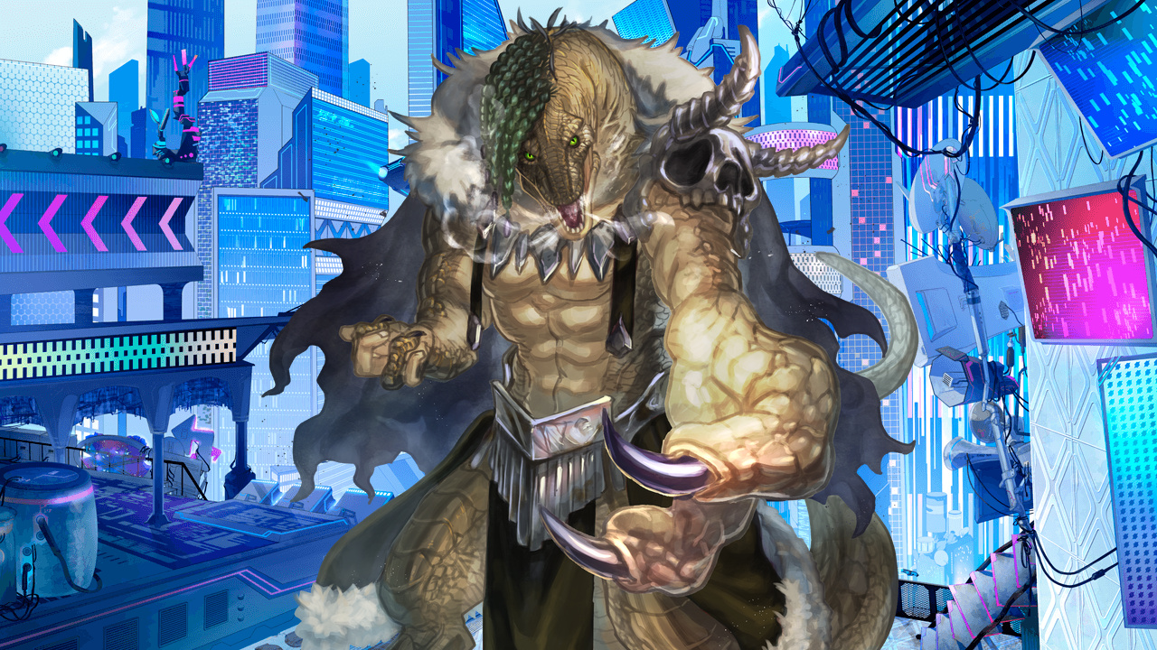 しかし見るからに破壊力がありそうな攻撃は、タイマイ・ジローのその強靭な恐竜の鱗に阻まれる──激しい衝撃は高らかな音を響かせ、ホームランよろしく後方へと吹き飛ばすだけに留まった。