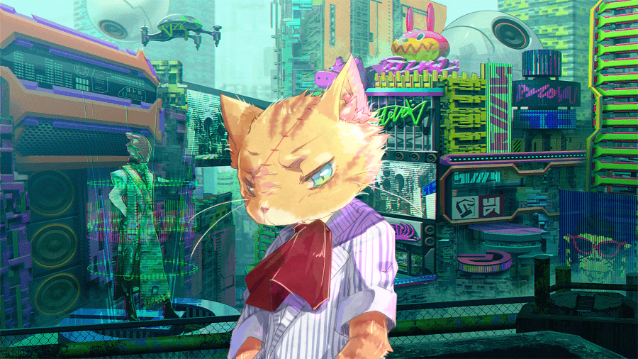 色彩豊かなポップさとサイバーな感じ溢れる街中を、思いっきり叫びながら走り抜ける一つの影。