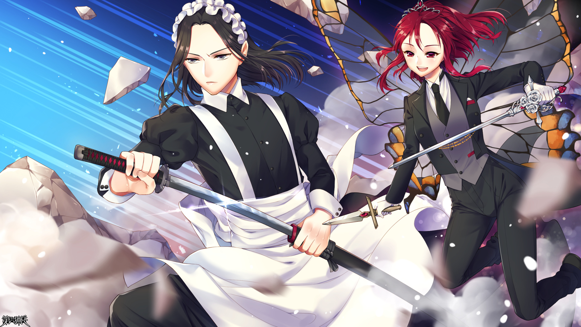 黒装束の執事とメイド。『黒』の滴るモップを手に持っているが、それを周囲に塗りたくる余裕もない。彼らはなんとか追跡者を撒こうと、狭い裏路地に飛び込んで……