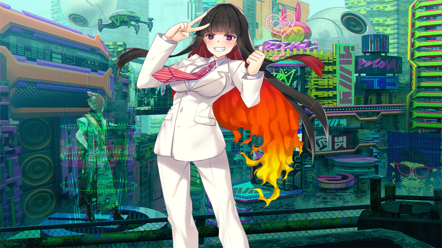 指を鳴らし、ハート型のグリモアを熱く輝かせるナンシー・アラタメ。